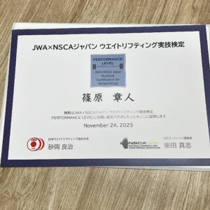 column コラム HOMEコラムブログウエイトリフティング実技検定 PERFORMANCE LEVEL 合格 2025.12.11 ブログ ウエイトリフティング実技検定 PERFORMANCE LEVEL 合格 JWA×NSCAジャパンウエイトリフティング実技検定 PERFORMANCE LEVEL に合格することが出来ました。 この検定の価値は、ハイスナッチ・クリーン&ジャークの師範力を証明に値するとのこと。 日々の習慣がこのような形となり、とても嬉しく感じております。 次のレベルに進むことが出来るため、その日のために引き続き研鑽を積んで参ります! 努力が出来る環境を整えて下さるNSCAジャパンの皆様には心から感謝しております。 前の記事へ 記事一覧